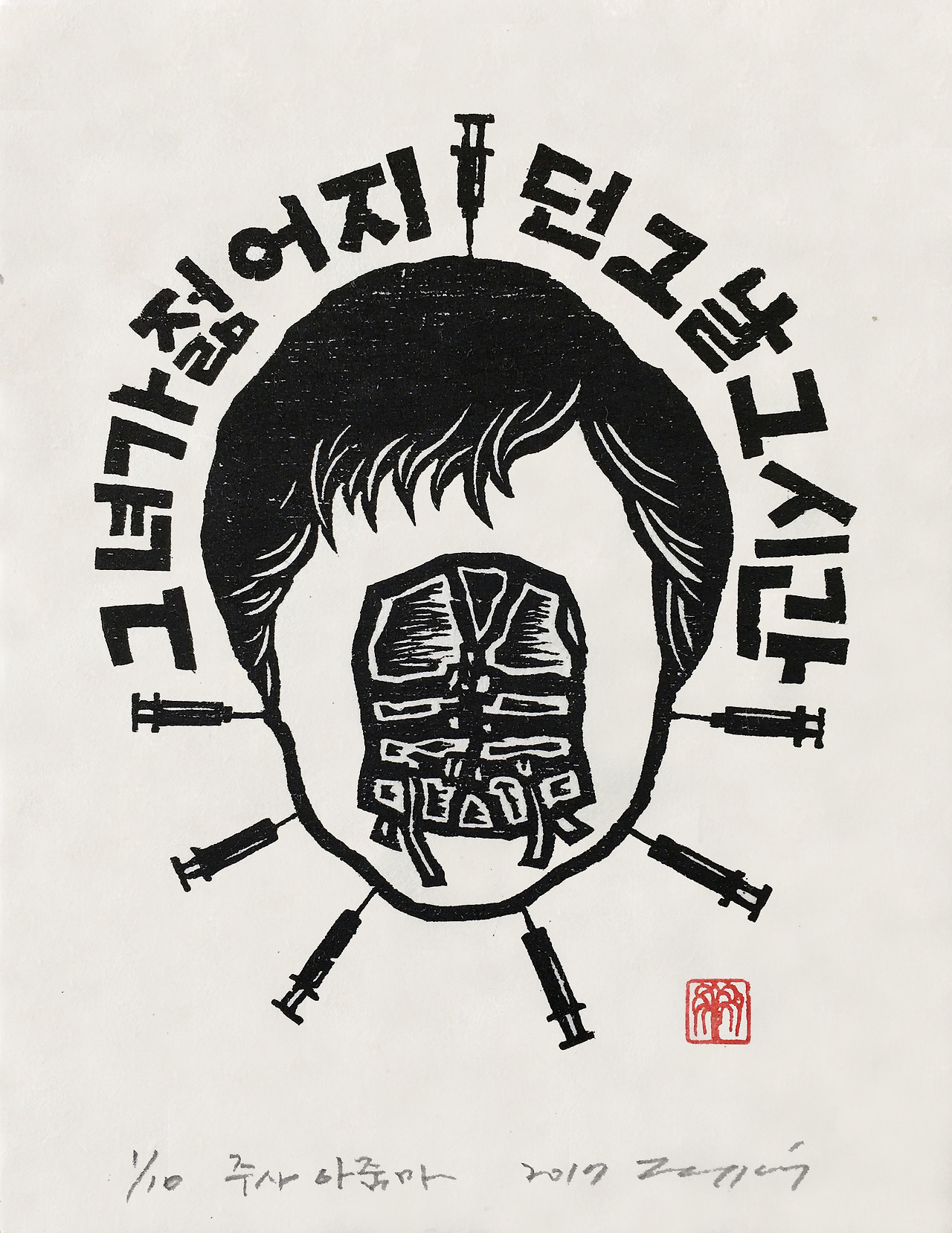 2017. 주사 아줌마. 22x17m. 한지 목판. Ed. 10.