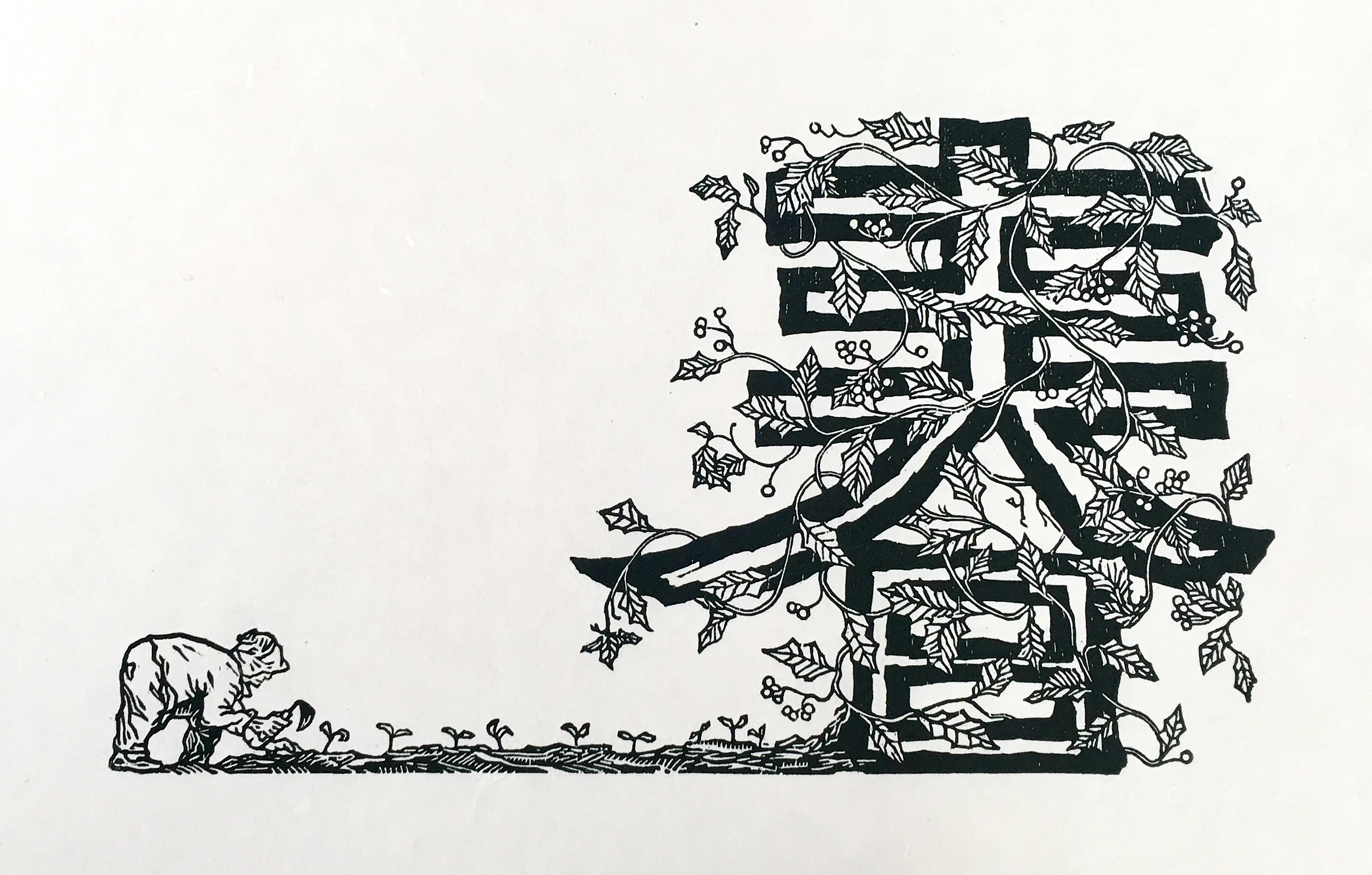 2018.자라는 봄. 20x36cm. 한지 목판 채색. Ed. 50.