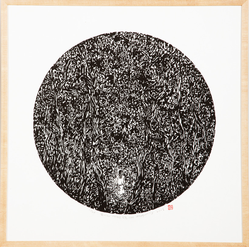 2018. 숲에서 생각한 것들 1020. 45x45cm. 한지 목판. Ed. 20.