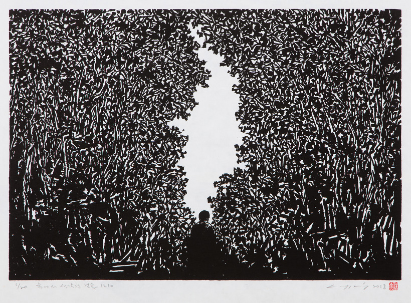 2018. 숲에서 생각한 것들 1210. 38x55cm. 한지 목판. Ed. 20.