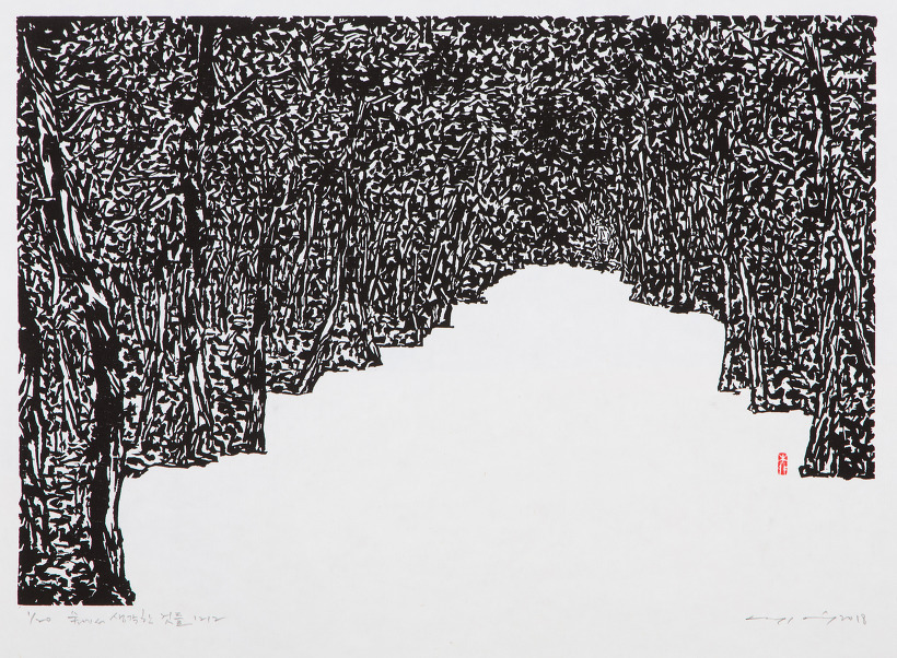 2018. 숲에서 생각한 것들 1212. 38x55cm. 한지 목판. Ed. 20.
