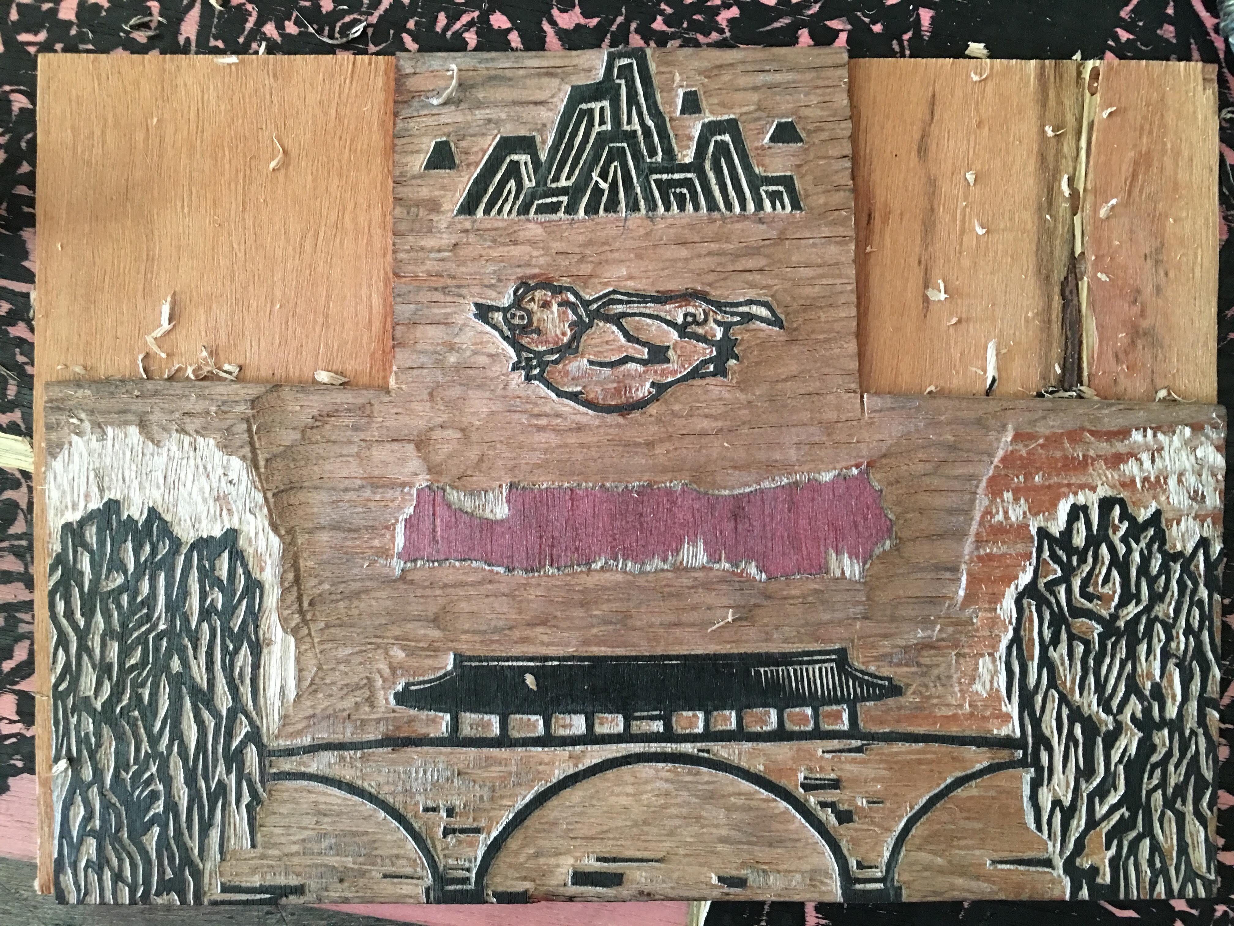 20190107. 돼지 날다. 10x10cm. 한지 목판. Ed. 365.