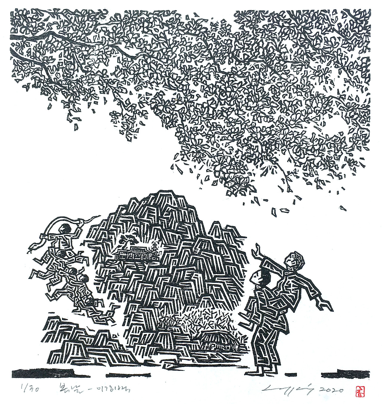20200211. 이강백 - 봄날 1. 27x27cm. 한지 목판. Ed. 30.