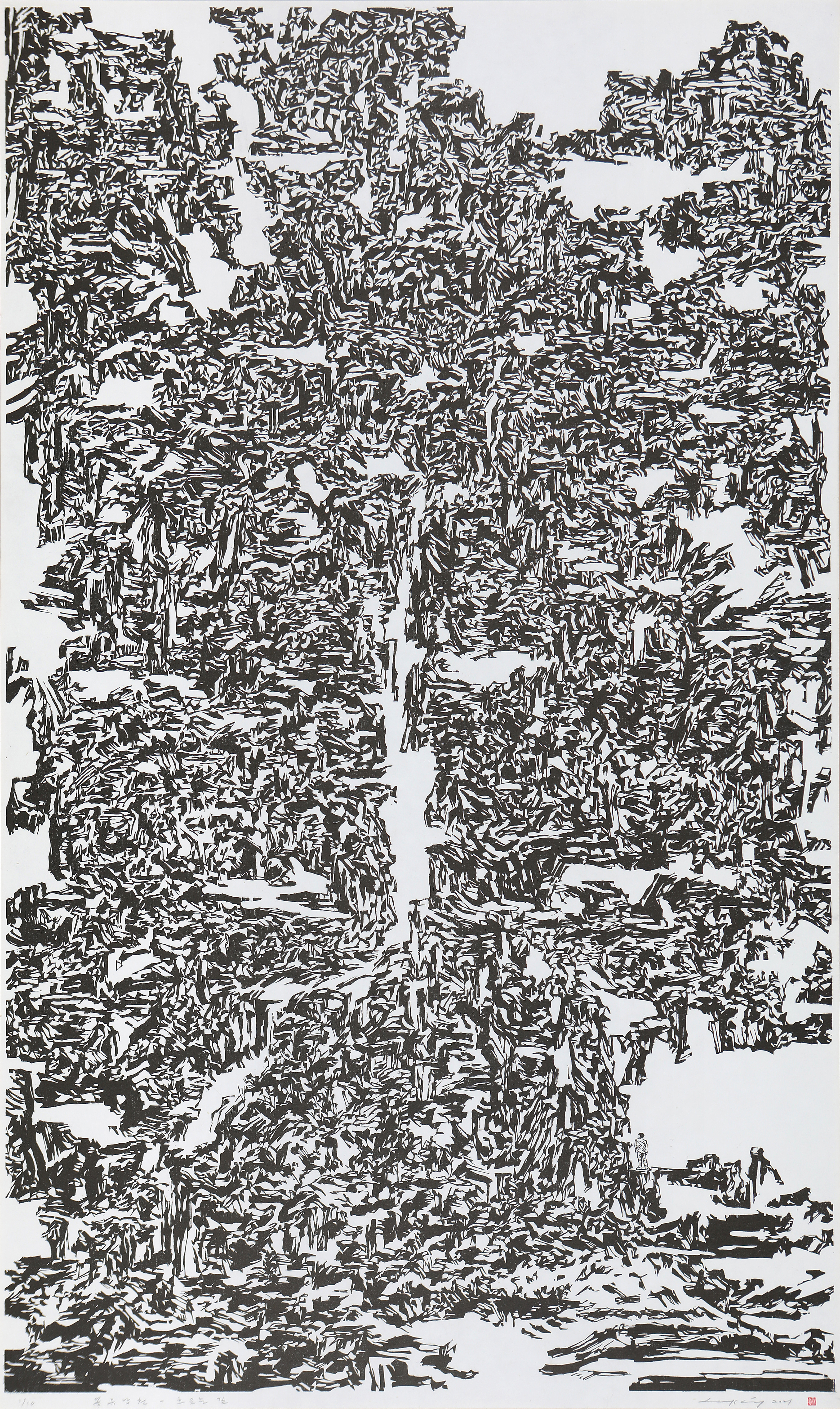 2021. 몽유남천 - 흐르는 길. 200x122cm. 한지 목판. Ed. 10.
