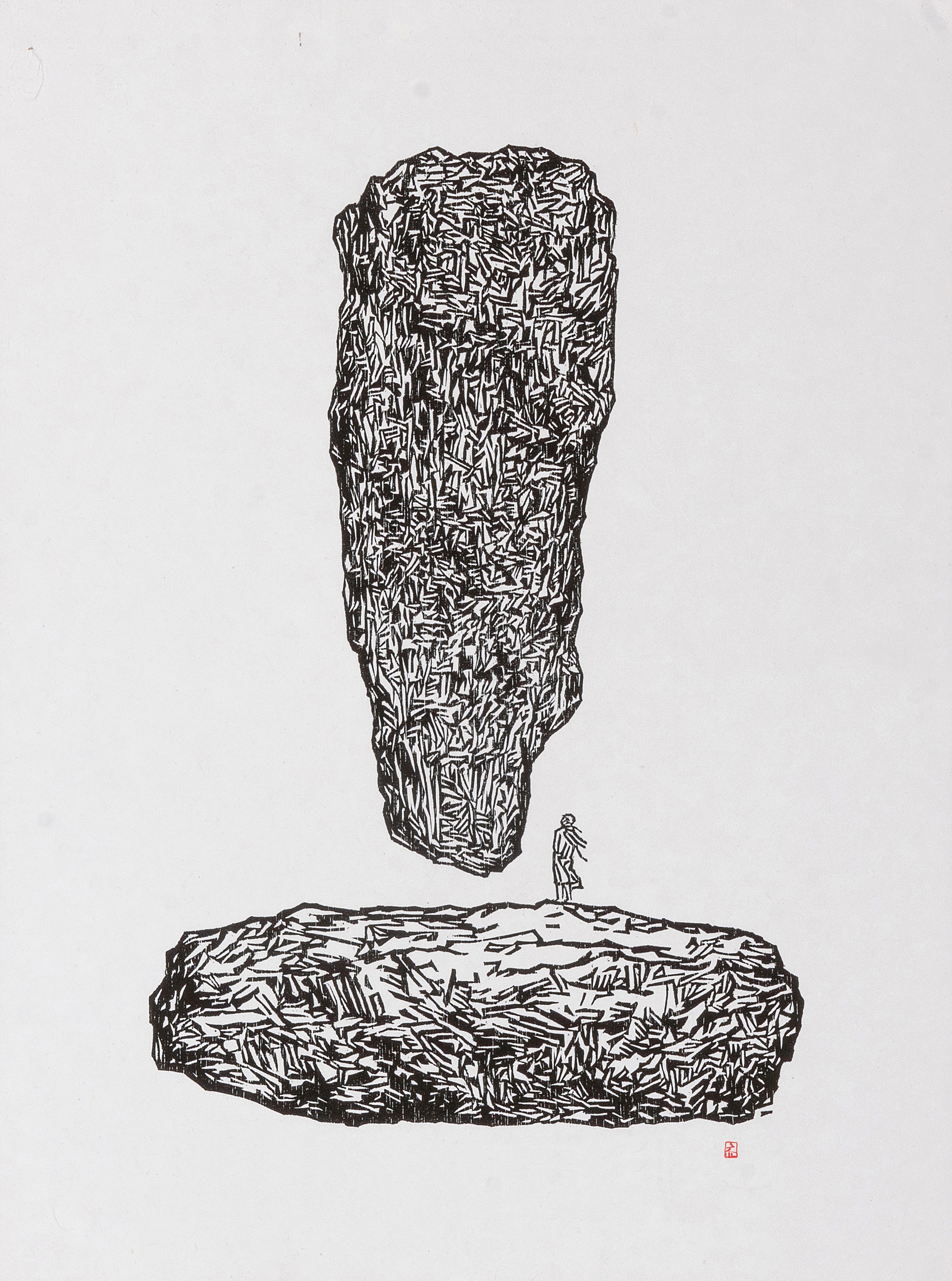 2021. 미망迷妄 - 떠 있는 돌. 60x45cm. 한지 목판. Ed. 30.