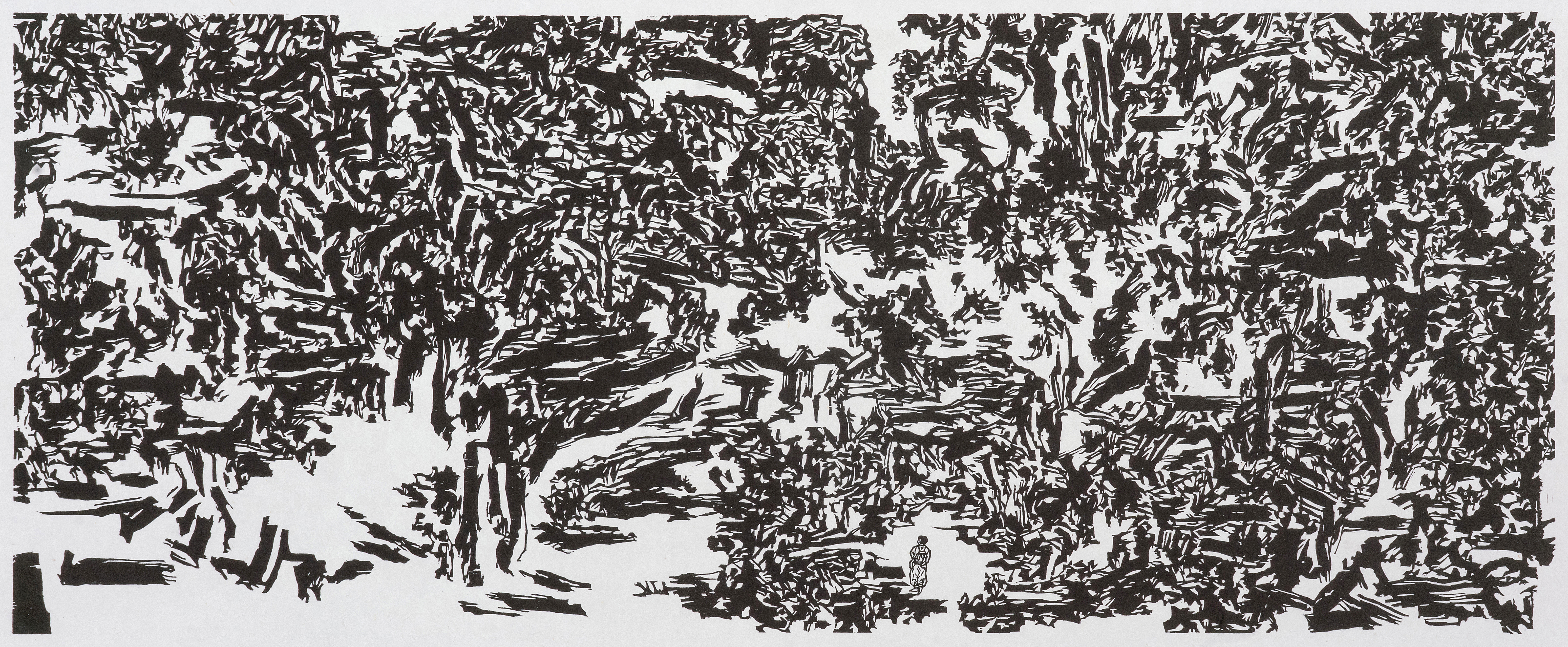 2021. 몽유남천 - 길 없는 길. 54x135cm. 한지 목판. Ed. 20.