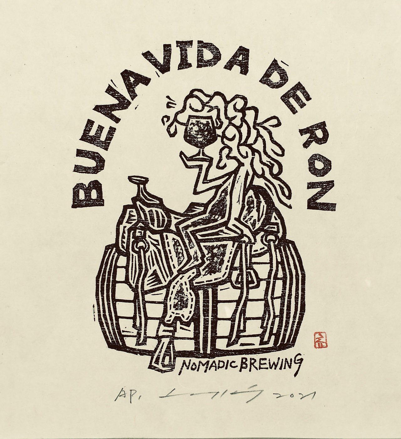 2021. 부에나 비다 데 론. 16x13cm. 한지에 목판. AP.