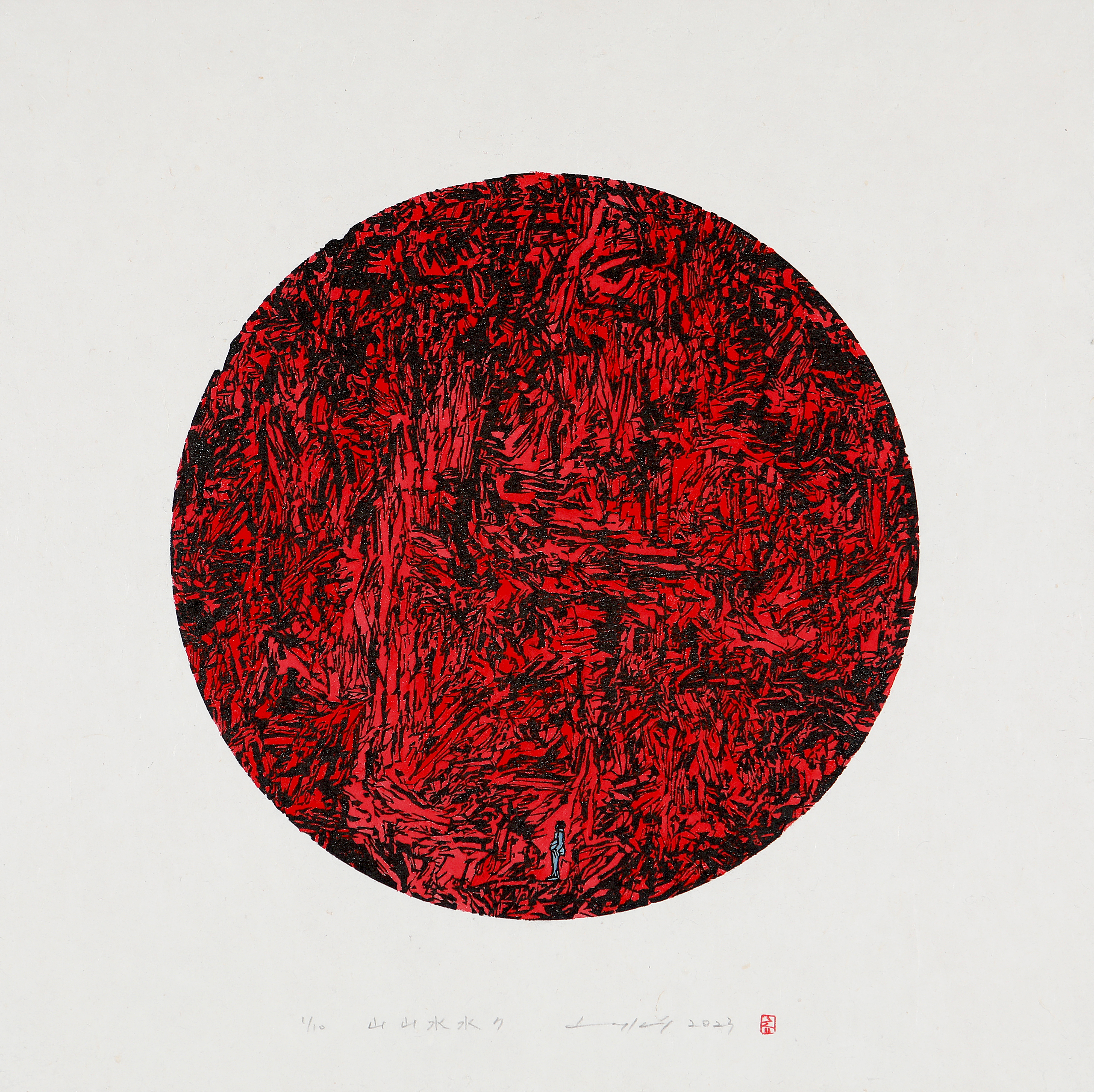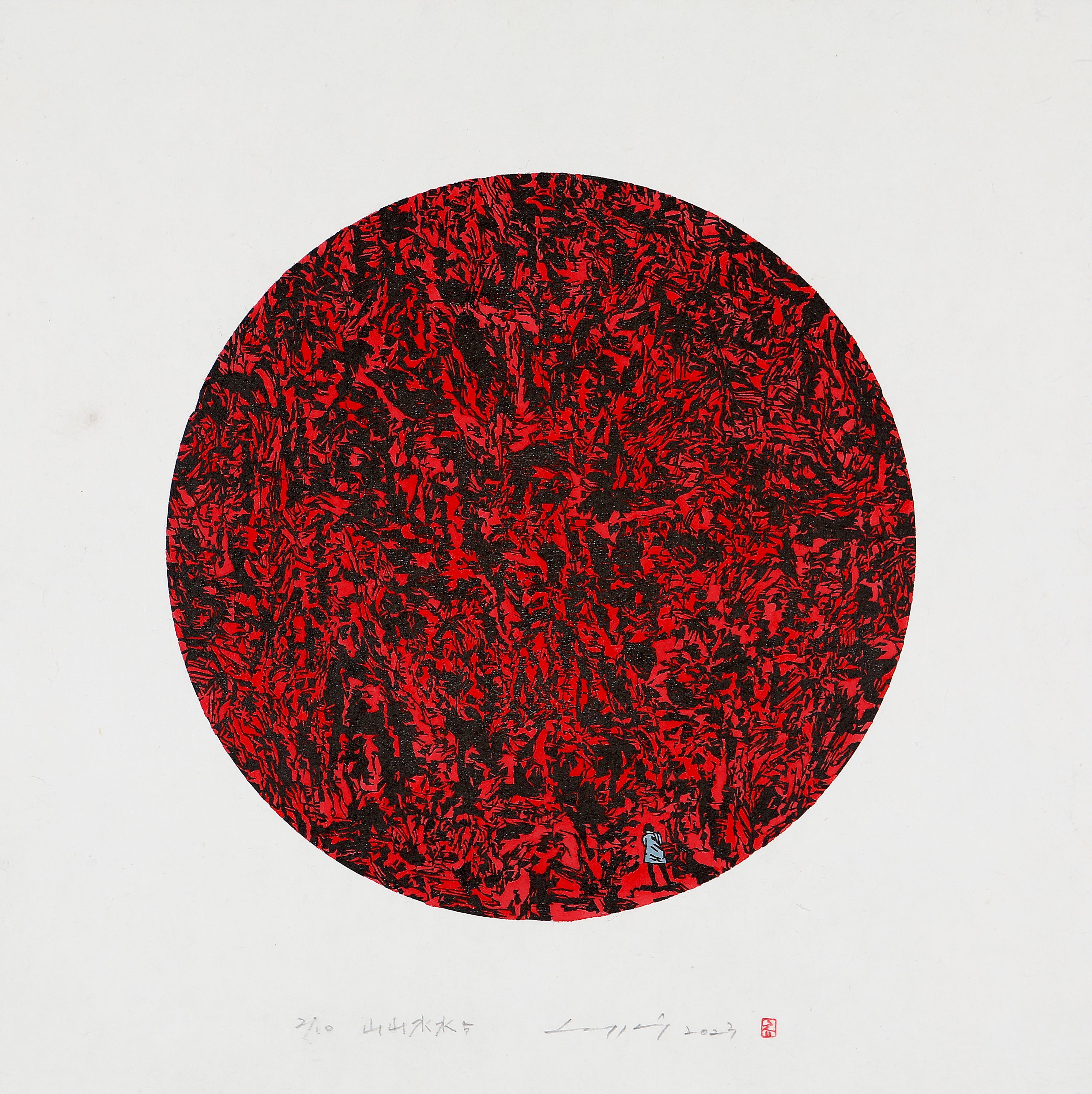 2023. 산산수수5-R. 30x30cm. 한지 목판 채색. Ed. 10.