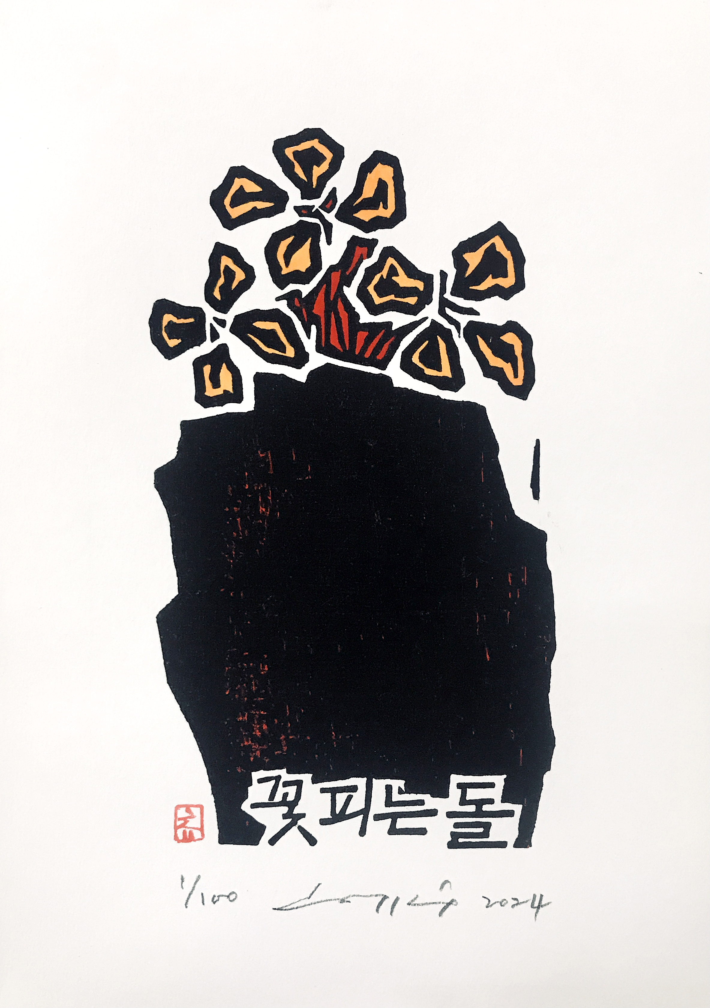 2024. 꽃피는 돌. 14.5x8.5cm. 판화지. 목판. Ed. 100.