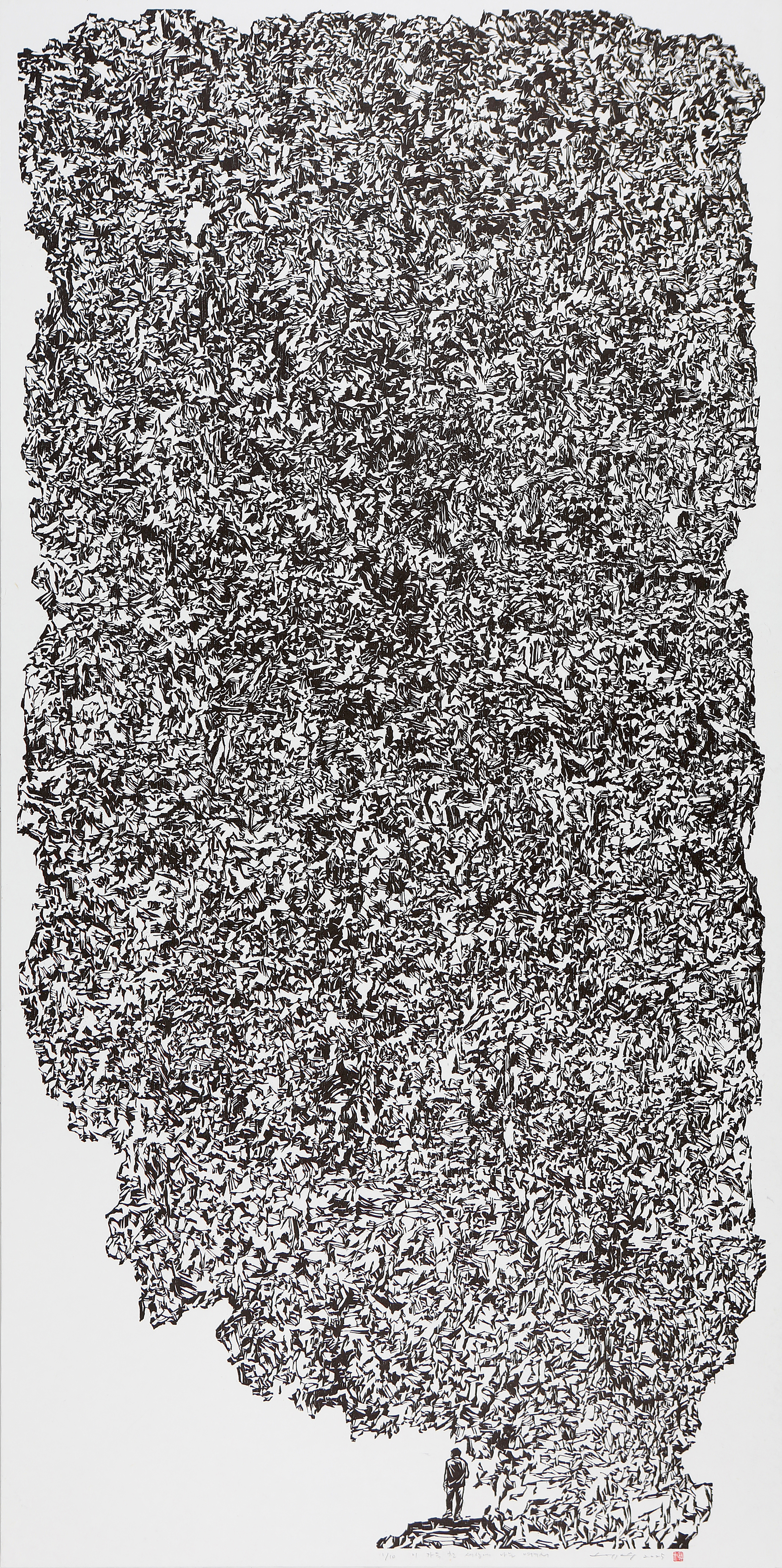 2025. 이 가득 찬 세상에 나는 여기서. 178×87cm. 한지 목판. Ed. 10.