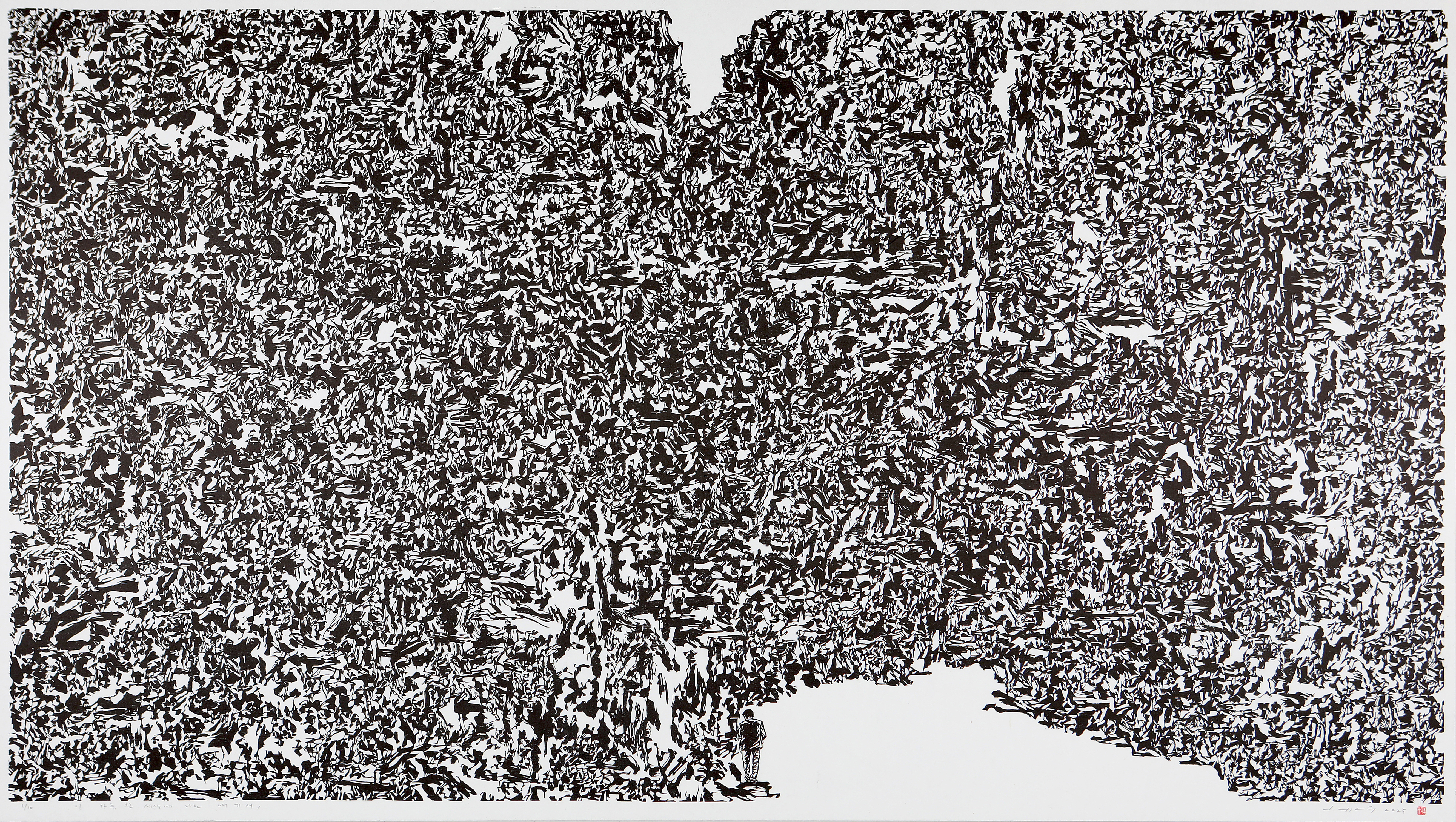 2025. 이 가득 찬 세상에 나는 여기서. 110×200cm. 한지 목판. Ed. 10.