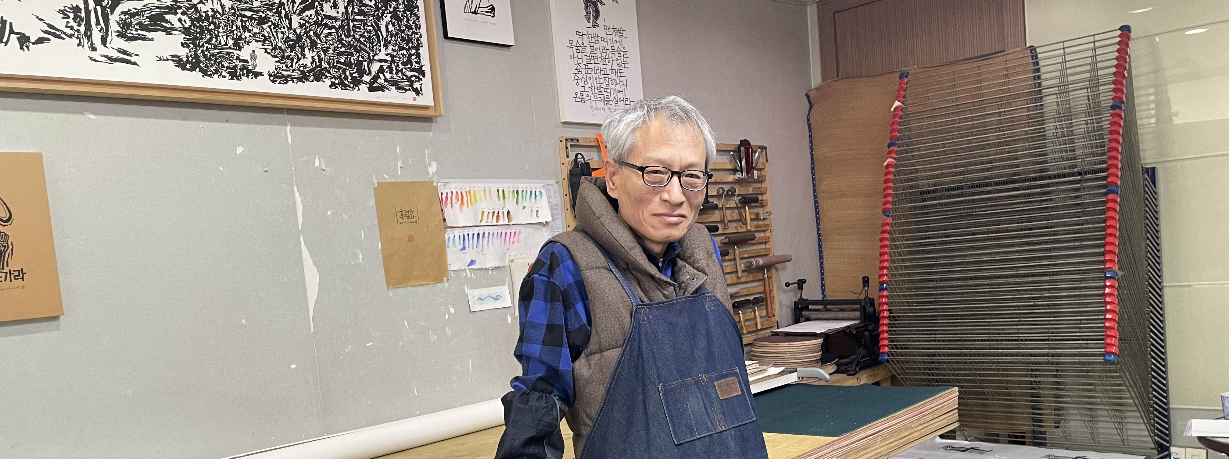 Born in 1964 at Yongmeori Pass, Jeonju, Jeollabuk-do, Yu Dae-soo grew up playing around Wansan Chilbong and Nambu Market. He majored in printmaking at Hongik University and later studied cultural anthropology at Jeonbuk National University after returning to his hometown. Since 1993, he has participated in over 130 group and collective exhibitions and held 20 solo exhibitions. From 1999, he worked as an exhibition planner for over a decade at Seosin Gallery and the Korea Sori Culture Center in Jeonju. Additionally, he briefly worked as a contract public servant in Jeollabuk-do and was also employed at the Jeonju Hanok Village Fan Culture Museum. In 2007, he co-founded the Culture Research institute ‘Chang’ with colleagues from the arts and culture sector, engaging in cultural and artistic planning and research activities. During this period, he temporarily stepped away from painting. However, since he opened his studio in 2017, he has devoted himself entirely to creating prints.